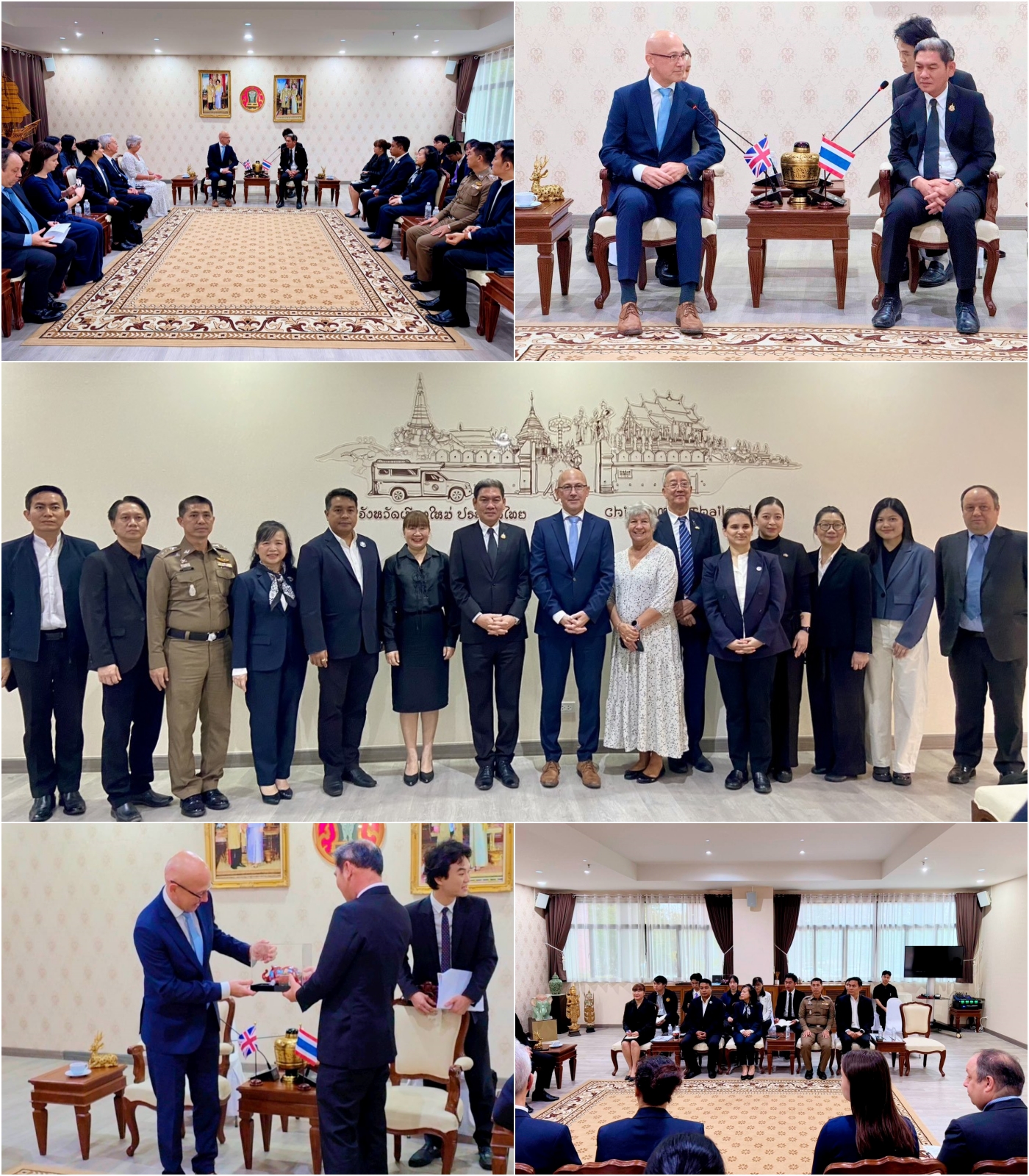 วันที่ 16 มค. 68 ณ ห้องรับรองศาลากลางจังหวัดเชียงใหม่ นายรัฐพล นราดิศร ผู้ว่าราชการจังหวัดเชียงใหม่ ให้การต้อนรับ นายมาร์ค กูดดิ้ง เอกอัครราชทูตอังกฤษประจำประเทศไทย ในโอกาสเข้าเยี่ยมคารวะ เพื่อหารือแลกเปลี่ยนความคิดเห็นและกระชับความสัมพันธ์อันดีระหว่างจังหวัดเชียงใหม่กับประเทศอังกฤษ โดยมี หัวหน้าส่วนราชการที่เกี่ยวข้องเข้าร่วมให้การต้อนรับ