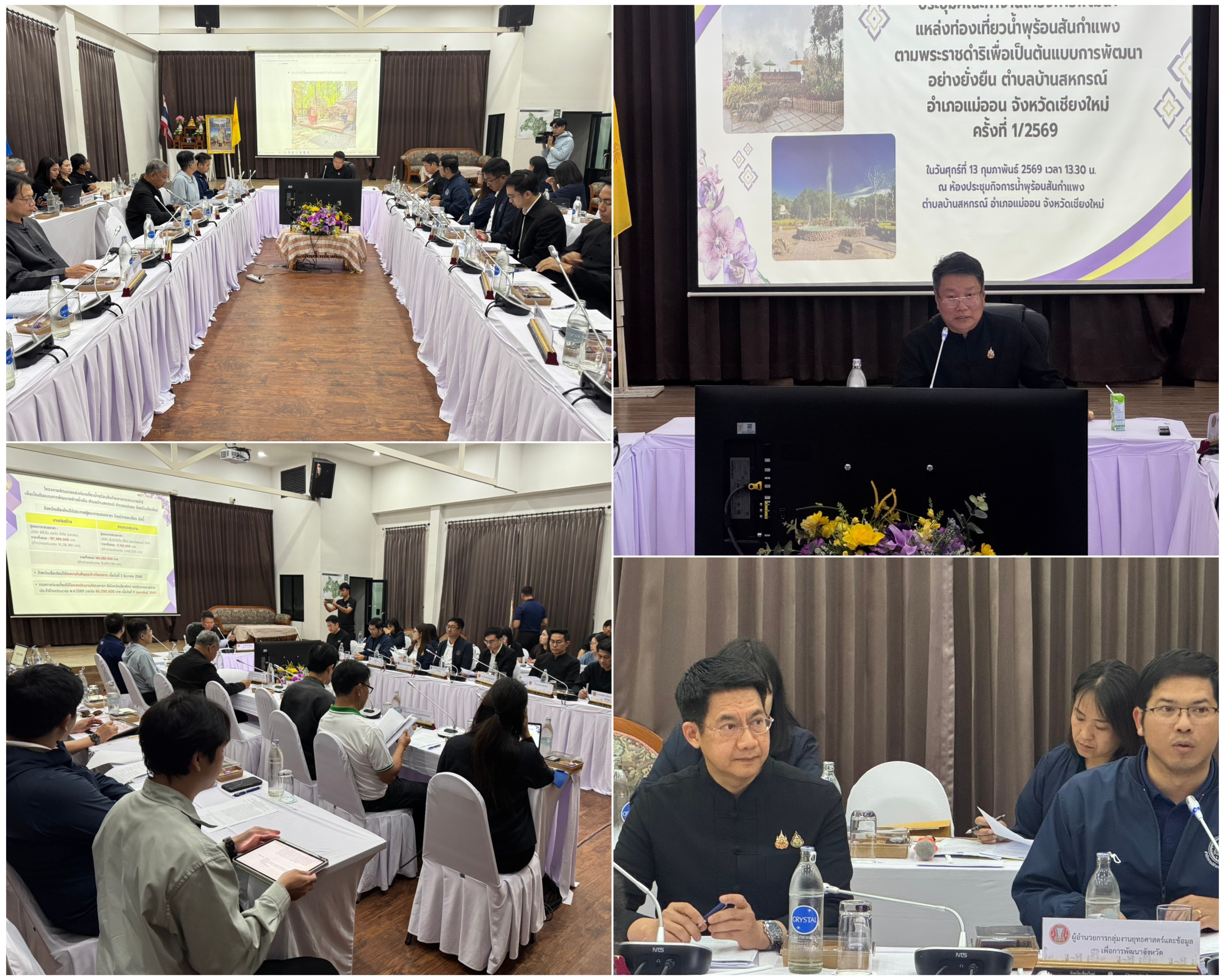 วันที่ 13 ก.พ. 69 ที่ ห้องประชุม กิจการน้ำพุร้อนสันกำแพง อำเภอแม่ออน จังหวัดเชียงใหม่ นายชัชวาลย์ ปัญญา รองผู้ว่าราชการจังหวัดเชียงใหม่ เป็นประธานในการประชุมคณะทำงานโครงการพัฒนาแหล่งท่องเที่ยวน้ำพุร้อนสันกำแพงตามพระราชดำริ เพื่อเป็นต้นแบบการพัฒนาอย่างยั่งยืน ตำบลบ้านสหกรณ์ อำเภอแม่ออน จังหวัดเชียงใหม่ ซึ่งเป็นการประชุมร่วมกันครั้งแรกระหว่างคณะทำงานฯ ส่วนราชการที่เกี่ยวข้อง และบริษัทผู้รับจ้าง ภายหลังจากที่ได้รับงบประมาณจากกรมการท่องเที่ยว เพื่อติดตามเร่งรัดการดำเนินโครงการฯ ให้เป็นไปตามกรอบเป้าหมายที่กำหนดไว้