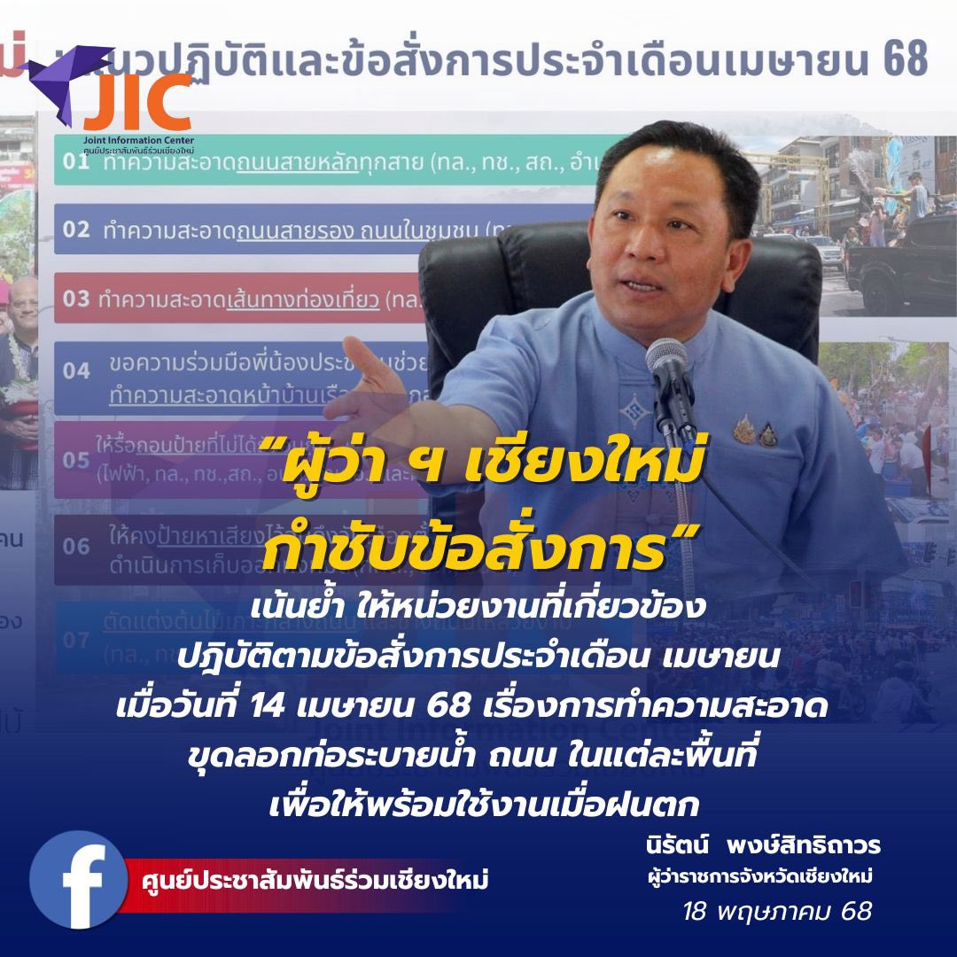วันที่ 12 ธ.ค. 68 ที่ห้องศูนย์ปฏิบัติราชการจังหวัดเชียงใหม่ (POC) ชั้น 3 ศาลากลางจังหวัดเชียงใหม่ นายศิวกร บัวป้อง รองผู้ว่าราชการจังหวัดเชียงใหม่ พร้อมด้วยหัวหน้าส่วนราชการและหน่วยงานที่เกี่ยวข้อง ร่วมรับฟังการประชุมคณะกรรมการนโยบายการป้องกันและลดอุบัติเหตุทางถนนแห่งชาติ ครั้งที่ 2/2568 ผ่านสื่ออิเล็กทรอนิกส์ โดยมีนายพิพัฒน์ รัชกิจประการ รองนายกรัฐมนตรีและรัฐมนตรีว่าการกระทรวงคมนาคม เป็นประธาน เพื่อพิจารณาแผนบูรณาการป้องกันและลดอุบัติเหตุทางถนนช่วงเทศกาลและวันหยุด ปี 2569