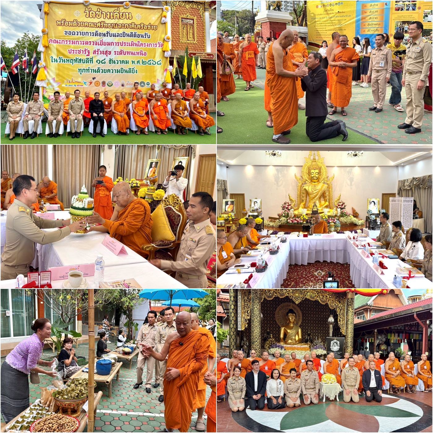 วันที่ 18 ธ.ค. 68 นายรัฐพล นราดิศร ผู้ว่าราชการจังหวัดเชียงใหม่ พร้อมด้วย นายศิวกร บัวป้อง รองผู้ว่าราชการจังหวัดเชียงใหม่ หัวหน้าส่วนราชการ หน่วยงานที่เกี่ยวข้อง และประชาชน ร่วมต้อนรับ พระธรรมรัตนาภรณ์ ประธานกลางโครงการวัด ประชา รัฐ สร้างสุข และคณะกรรมการโครงการวัด ประชา รัฐ สร้างสุข (ระดับหนเหนือ) ที่เดินทางมาตรวจติดตามและประเมินผลการดำเนินงาน “โครงการวัด ประชา รัฐ สร้างสุข” ประจำหนเหนือ ประจำปี 2568 ณ วัดช่างเคี่ยน ต.ช้างเผือก อ.เมืองเชียงใหม่ จ.เชียงใหม่ ซึ่งเป็นวัดตัวแทนของจังหวัดเชียงใหม่ที่ผ่านการคัดเลือกให้เข้ารับการประเมินต่อในระดับภาค (ภาคเหนือ)